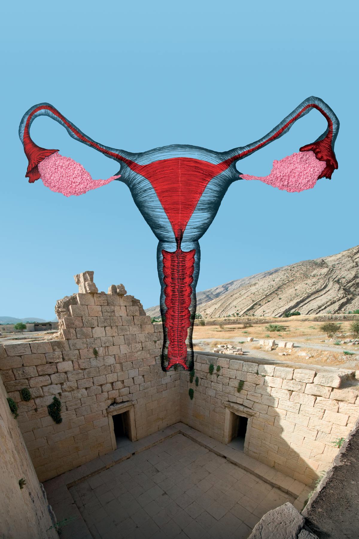The work, with its distinct focus on the three-dimensional form interlaces sexuality with politics, evoking tender, and sensual nuances of horror. She often combines textile media including traditional Persian kilims with sculpted or found objects, and her use of craft technique with its strong references to folkloric primitivism function to illuminate the dreadful alienation that hangs over so much of the work.